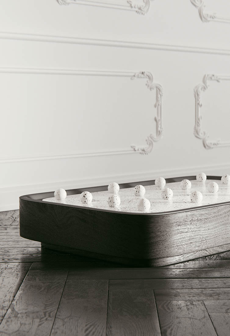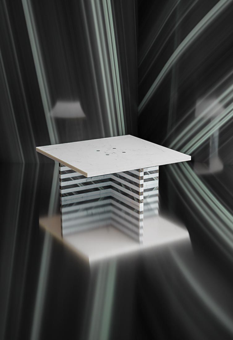 MATERIAL: Zena Travertine, Matte Irisdescent Steel, Artedomus Inax Tiles
